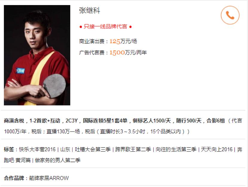 2016里约奥运年,张继科的商业收入相关统计