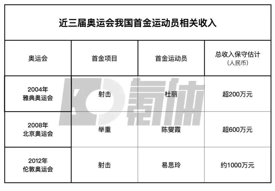 那么,在荣誉与情怀之外,一块奥运「首金」,究竟有多值钱呢?我们不妨来看看近3届奥运会首金运动员的相关数据: