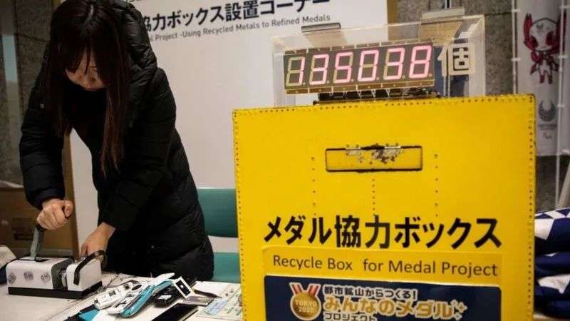 东京奥运会为收集奖牌材料专设的「电子垃圾回收箱」 图片来自Getty Images