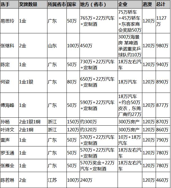 当然,金牌的实际价值对运动员来说,更多的是一种象征意义。与之形成鲜明对比的是,金牌背后所带来的「奖励清单」,这些可能是更让人期待的部分。