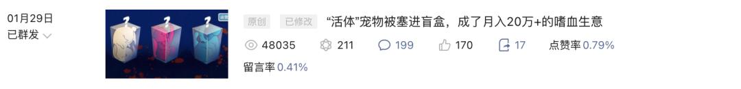 比如《活体宠物盲盒》这个选题,是在我们发布之后才上了热搜,但是 ta 在热度不够的情况下,仍然凭借着用户超强的愤怒情绪被疯狂转发。