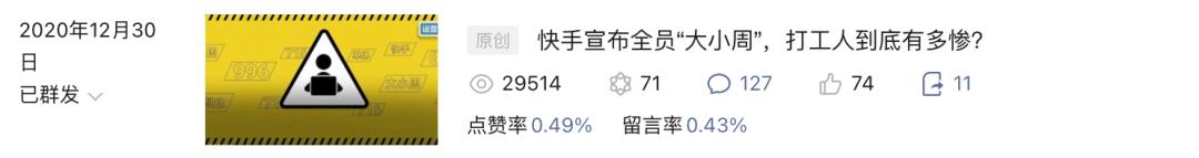 因此,“快手实施大小周”对我们来说就算「行业热点」了,所以我们选择了马上跟进。