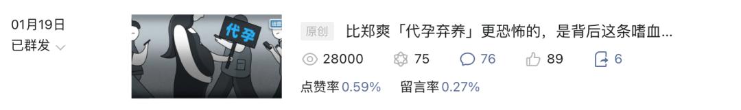 于是我们选择从「代孕灰产」这一角度切入,既是用户关心的,也符合用户对我们的预期 (因为我们经常会揭露一些灰黑色产业链) 。
