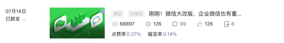这类文章对用户的核心价值在于第一手的有效信息,比如我们上周发的《刚刚!微信大改版,企业微信也有重大更新!》,其实就没有进行太多分析,因为里面的「有效信息」对用户来说已经足够了。