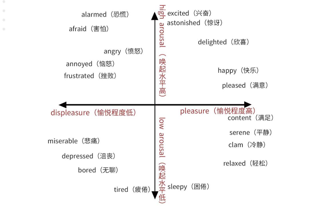 一般来说,高唤醒度的情绪,往往能激发用户点击和转发东西,比如惊讶、兴奋、恐慌、愤怒等等,具体的情绪大家可以参考下图: