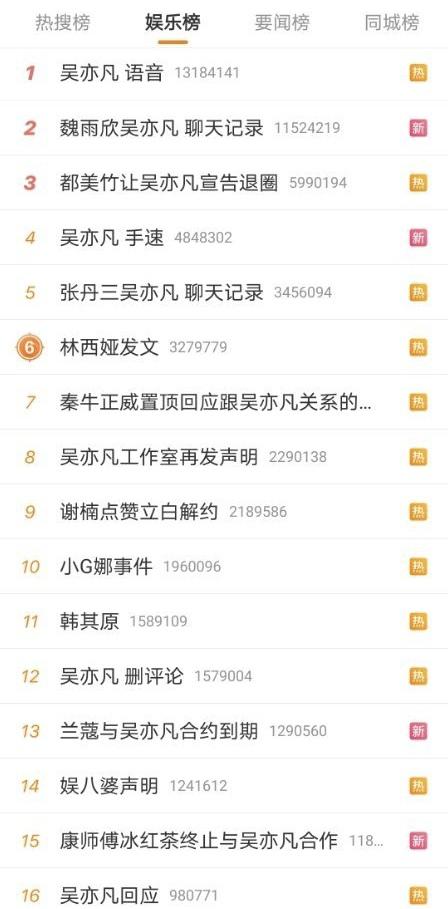 昨天晚上,最近闹得沸沸扬扬的吴亦凡事件,又上热搜了: