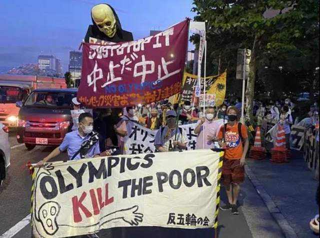再加上新冠疫情的影响,日本民众也曾多次游行示威,呼吁东京奥运再次延期或者取消,即使是在开幕式开始前,也依然有群众在抗议。