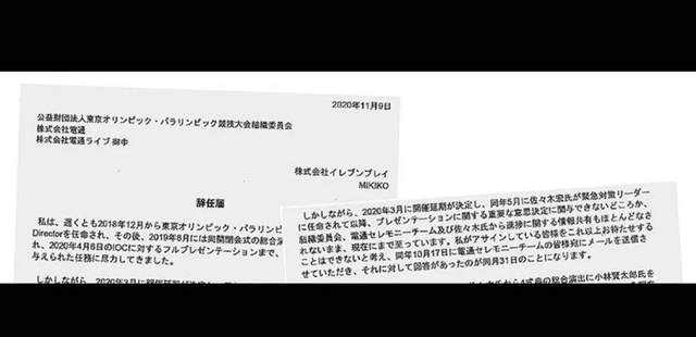 去年10月,MIKIKO曾给电通负责人发了邮件,向电通表示自己在过去几个月里完全得不到任何工作上的反馈,自己不能工作也就算了,但是团队里的500个人不能没活干。MIKIKO说自己因为这件事压力很大,还曾突发失聪。
