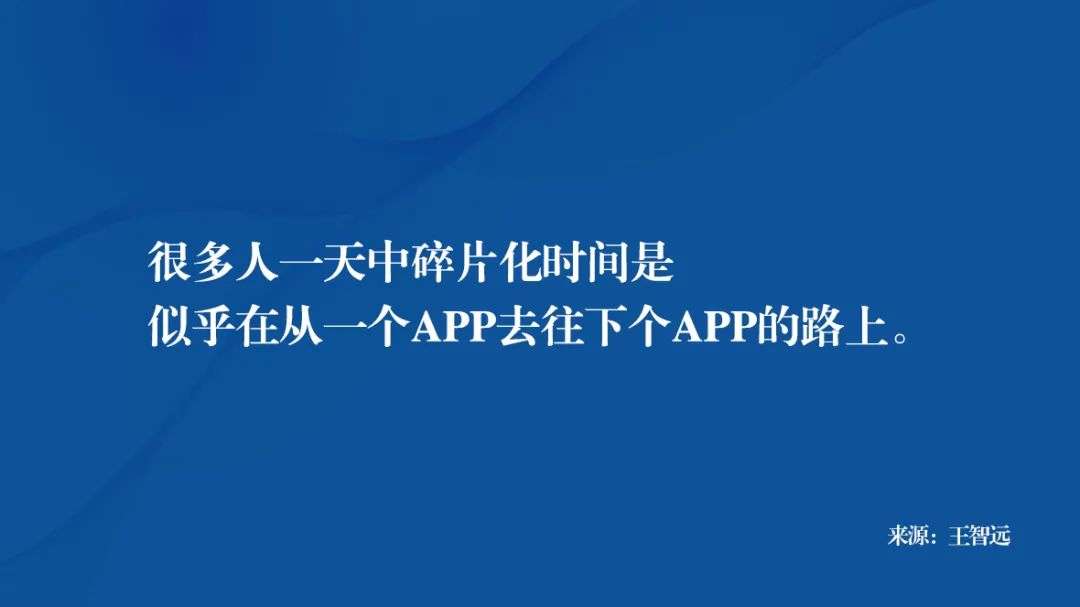 很多人一天中碎片化时间时,似乎在从一个APP去往下个APP的路上,刷会儿微博跳到微信,从微信跳到社群,从社群到头条,从头条跳到百度从不停歇,直到有重要任务打断它才中断,试想下,你是否有?