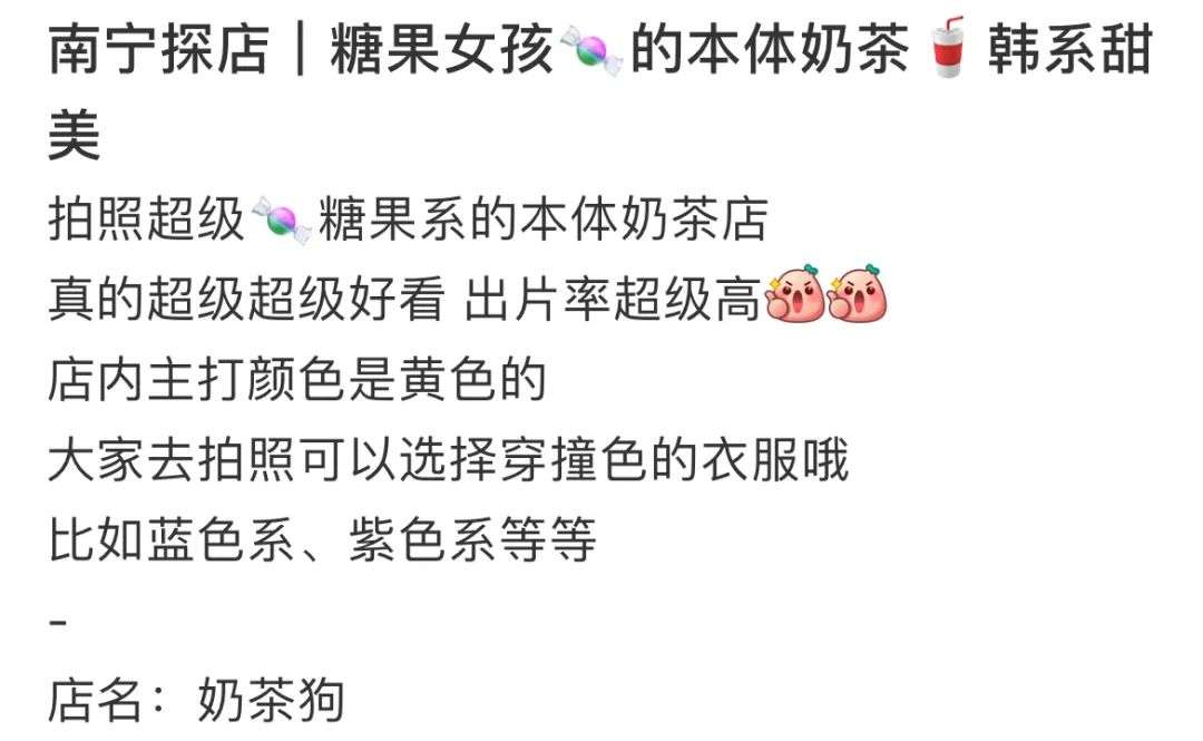 南宁有一家奶黄色的奶茶店,名叫“奶茶狗”,因其装修颜色是大片奶黄色,被网友亲切称为“网黄店”。