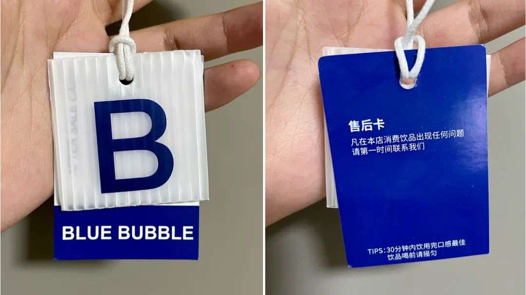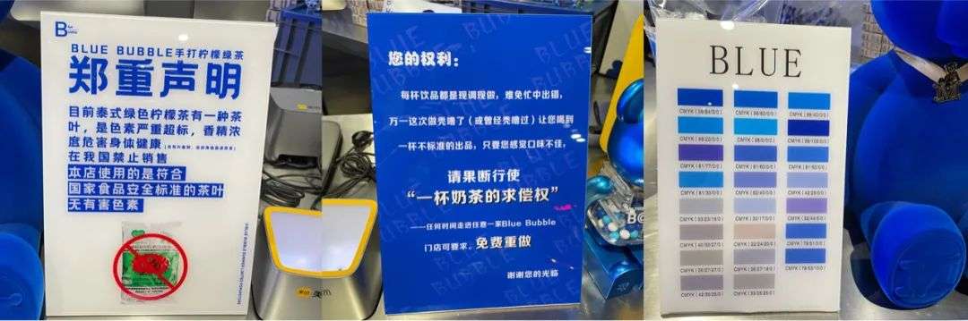 比如Blue Bubble,杯套里的“售后卡”、饮用小贴士,也都是蓝色,多次反复加深“蓝”的记忆。