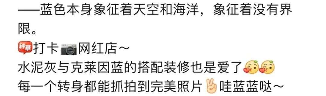 小红书的打卡笔记里,不乏“潮”、“酷”、“设计感强”、“有个性”等评价。 被提到最多的,是“出片率高”、“超适合拍照”等等,有消费者评价“每一个转身都能抓拍到完美照片”。