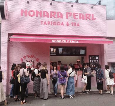 日本大阪的Nonara Pearl,从装修到杯子、吸管都是粉色,很受当地年轻女孩欢迎