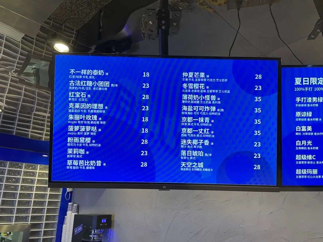 再看菜单: 泰绿柠檬茶、藻蓝蛋白制成的蓝色饮品、添加了爆爆珠的草莓芭比奶昔等等,满足各类打卡人群需求。