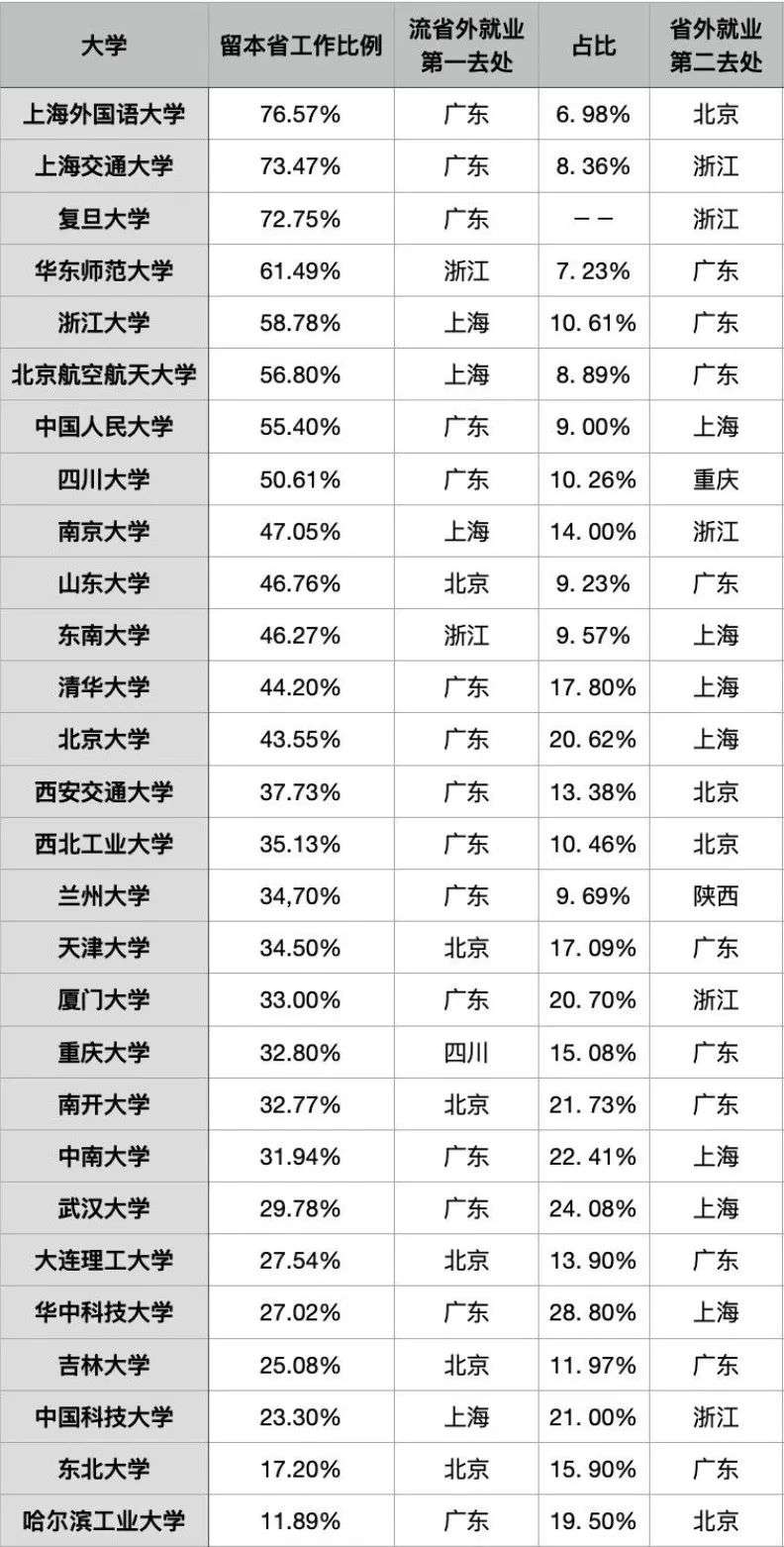 我们看到,中国28所重点大学,大多数都去了广东,留在北京和上海的越来越少,高材生如此,更何况普通高校的毕业生。