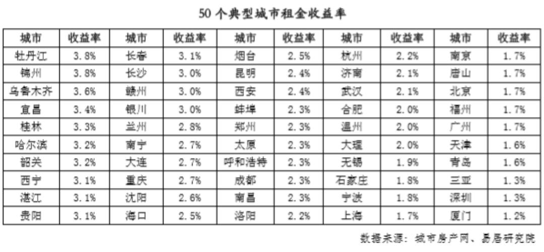 房租下降会导致多套房持有者大量抛售房产吗?我们来看一组数据,中国各大城市租金收益率。