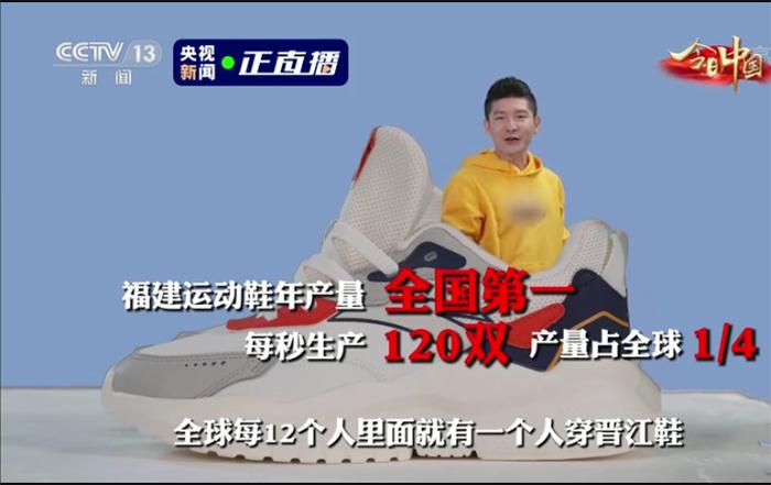 5月26日,在“今日中国”福建篇中,央视用4分35秒的时长讲述了晋江鞋的“了不起”。