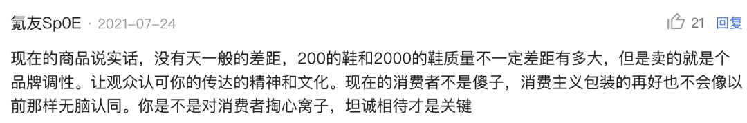 在这次社交平台对鸿星尔克的讨论中,“设计”“设计师”都是热度较高的关键词。年轻人们在为品牌价值观买单时,也真诚建议国货能提高设计感,打造出更好的产品。