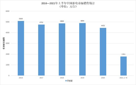 根据奥维云网数据显示,2021年上半年,中国彩电市场累计销量1781万台,同比下降14.7%;销额虽同比增长15.1%,达到594亿元,但彩电零售均价涨幅一度接近50%,直接导致市场销量自3月起,连续4个月出现11%-34%的大幅度下滑。