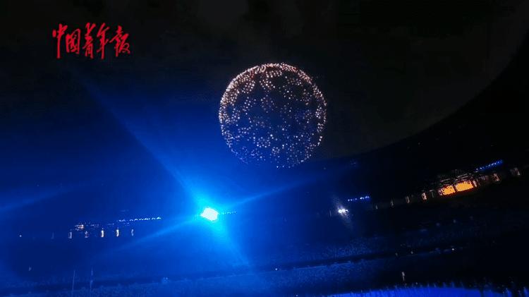 然而,开幕式并没有看到流星雨,取而代之的是用1824架无人机排出的特效节目,一会儿排成五环LOGO,一会儿排成旋转的地球。呼应了本届奥运会的主题,即“United by Emotion”(情同与共):