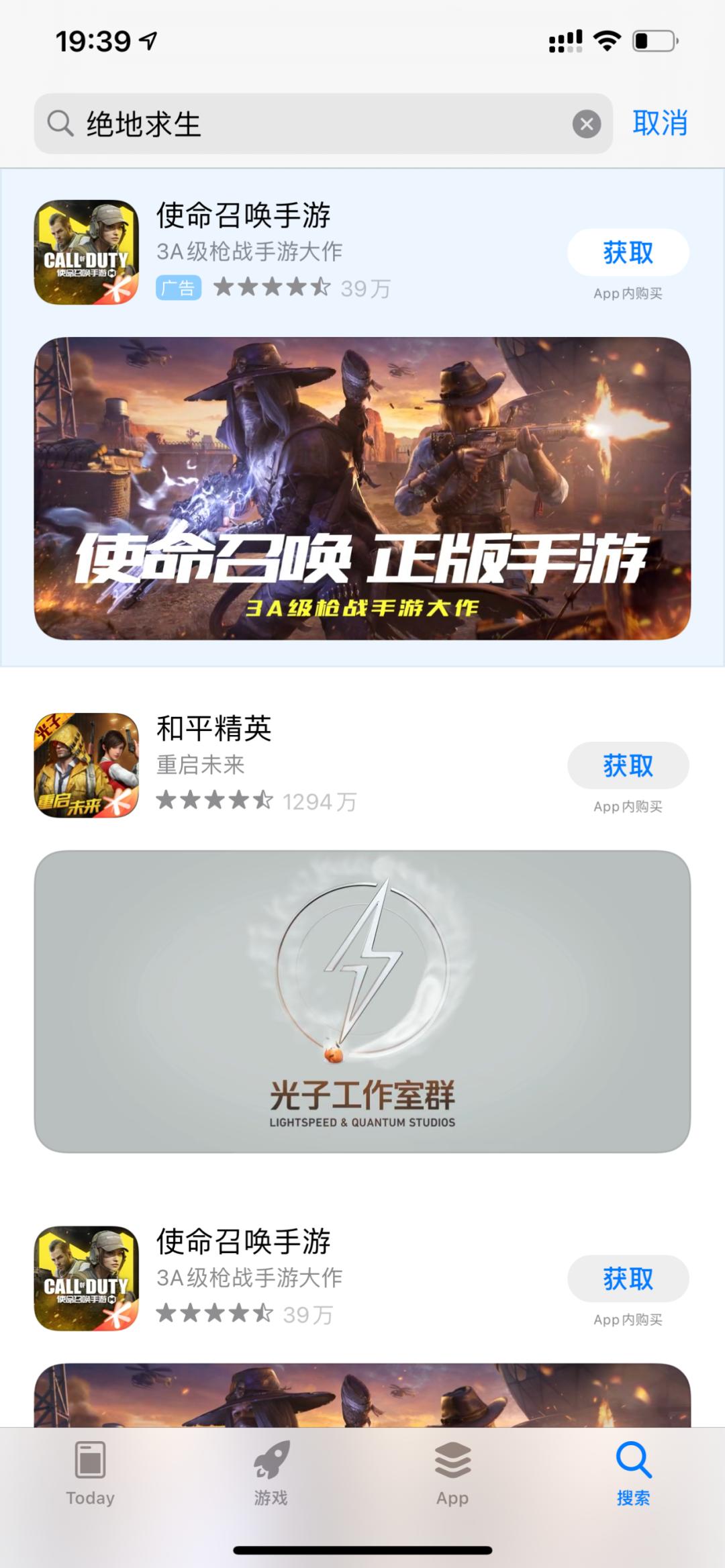 不过目前而言,ASA的实现方式还比较简单和直接。尤其是在中国市场目前所开放的功能仅限于出现在用户的搜索结果中。根据目前亿邦验证,Search tab ads在中国市场尚不可用。