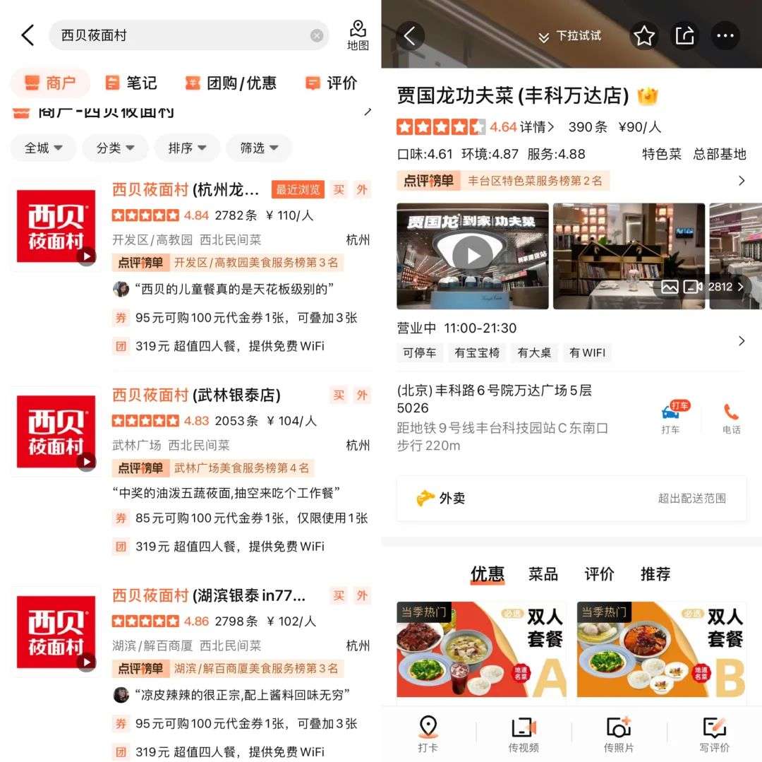 据大众点评上的数据显示,西贝筱面村的人均消费在105元,而贾国龙功夫菜的人均消费为90元,可见预制菜在堂食性价比上不占优势。
