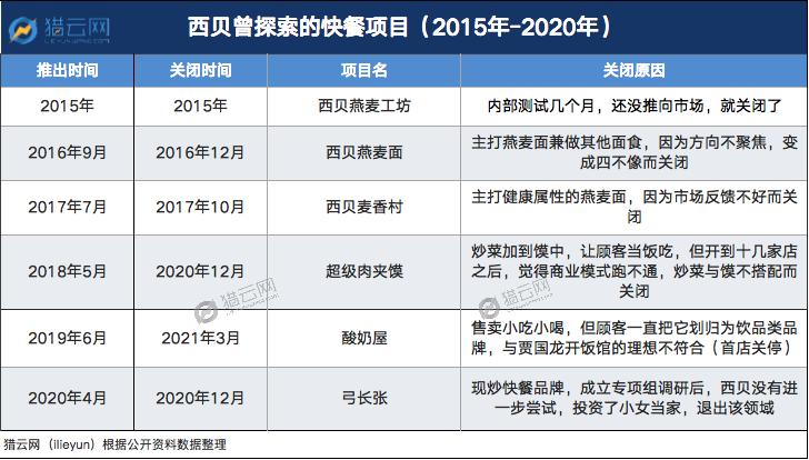 尽管西贝意识到要孵化一个副品牌来让自己在餐饮大军中拥有更多优势,但在实际操作中,无论是西贝燕麦面、快餐品牌麦香村还是超级肉夹馍项目,初始之时都是信心百倍甚至定下上万家门店的目标,往往三四个月后便被紧急叫停。可见,西贝的新业务拓展能力并不强。