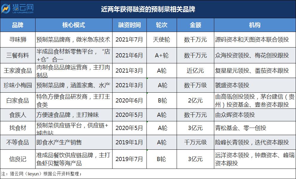 除了老玩家外,2021年新锐品牌更是持着资本的东风进入市场。珍味小梅园、王家渡食品、三餐有料、寻味狮等接连获得融资,融资金额从数千万元到近亿元不等。叮咚买菜也直接下场,在江苏昆山投资6亿美元建鲜食工厂,近期还进军线下,开了几家鲜食厨房和三家早餐店。
