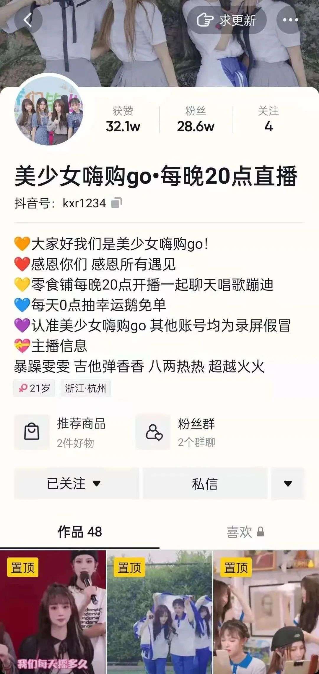 事实上,这几个主播早在今年4月就爆火了,当时的账号叫“美少女零食铺”,但前阵子,该直播间内主播大换血,这四位美少女主播也纷纷离职,直到最近回归。