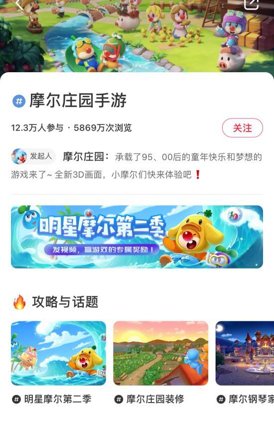 嗅觉灵敏的游戏厂商当然不会忽视小红书这个营销战场。以《摩尔庄园》为例,雷霆游戏与小红书官方开展合作,设立摩尔庄园专题页面,整合攻略和话题内容,以及开发H5页面引导玩家进行UGC创作。从数据来看,超过5000万次阅读以及12万人的参与,足以证明雷霆游戏在小红书平台就取得了不错的效果。