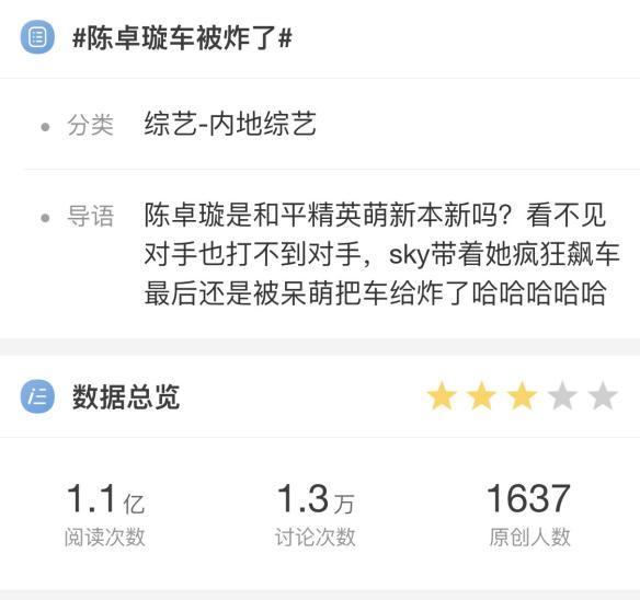 《落地成双》除了原有的16组“素人”之外,还要节目官宣时宣布aVa毛衍七、徐艺洋、陈卓璇、蔡卓宜、娄艺潇等女明星的加入,随即在微博掀起了粉丝群体的讨论。通过社交媒体的方式触达到更多用户群体。其中女艺人陈卓璇的可爱表现让 #陈卓璇车被炸了# 登上了微博热搜,阅读量高达1.1亿次以及拥有1.3万的讨论。
