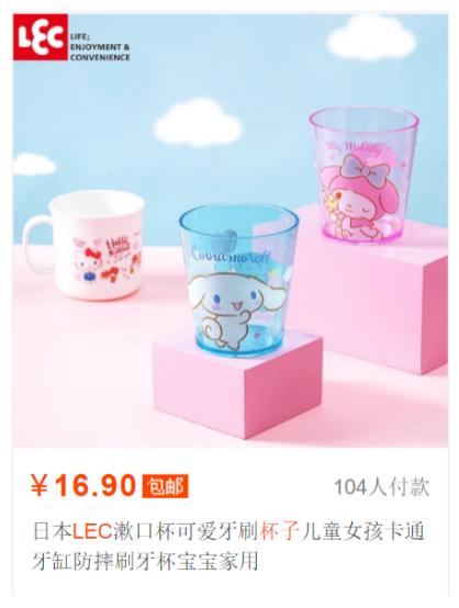 在淘宝网上,LEC还出售三丽鸥角色水杯,售价16.9元。