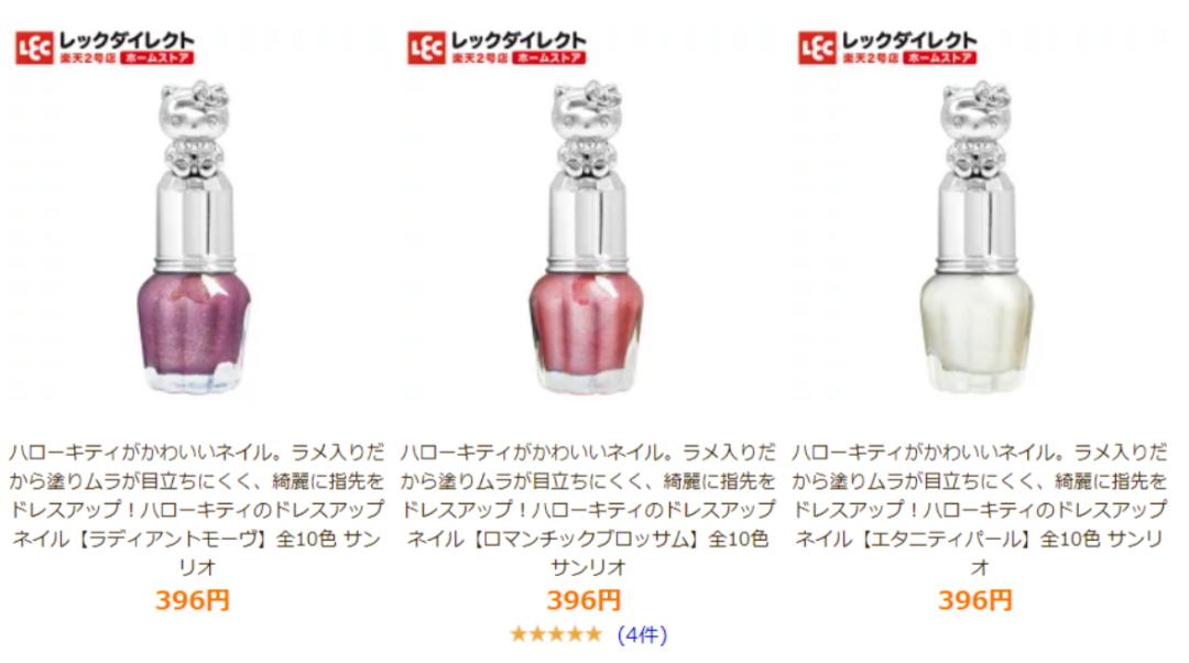 HELLO KITTY指甲油单瓶售价为396日元,约合人民币23元。