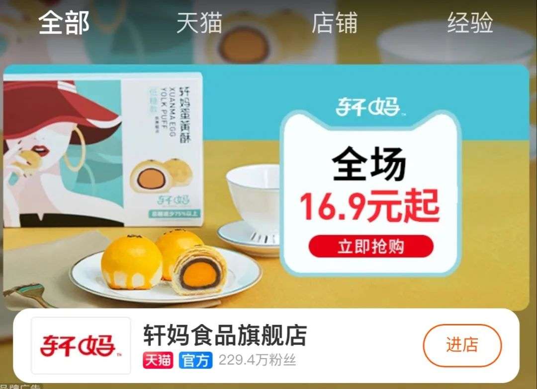 2016年创立于广西的蛋黄酥品牌轩妈在4月份完成超亿元B轮融资,今年天猫618,轩妈天猫店销售额近2500万,拿下传统糕点类目第一。