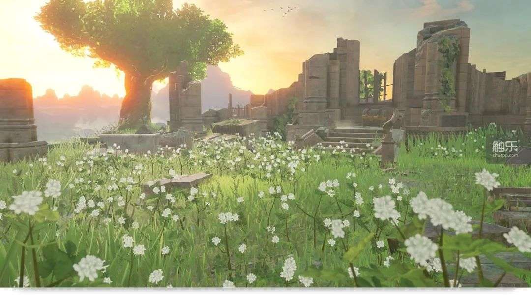 他在海拉鲁大陆中做的事和现实中没什么不同,买一间小屋,给小狗喂食,摘树上的苹果……相比于击败大魔王,他更喜欢用另一种角度体验日常生活,像旅行、吃饭、拍照。区别在于,游戏设法把这些东西精美地包装起来,用一种令人欣慰的方式呈现——一张温暖的床,一条散发着阳光和野餐味道的毛毯,翻越雪山后的一碗热汤,它们就像一条条线索,导向生活中的美好。