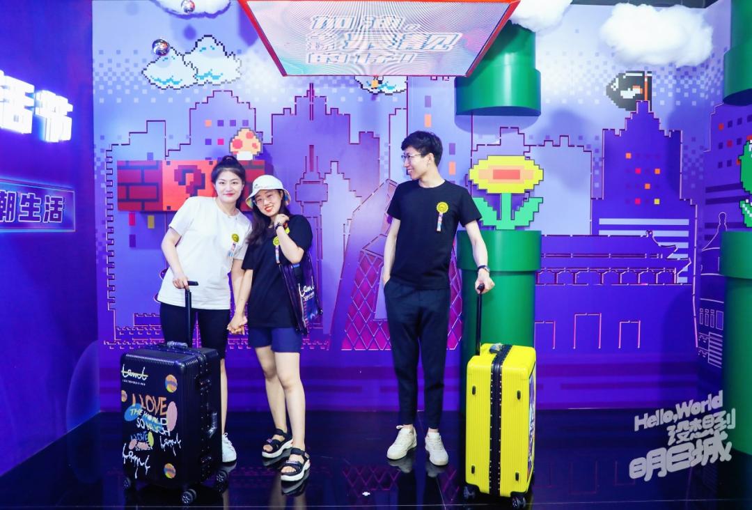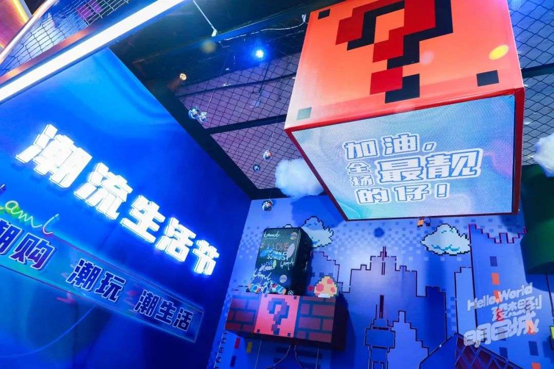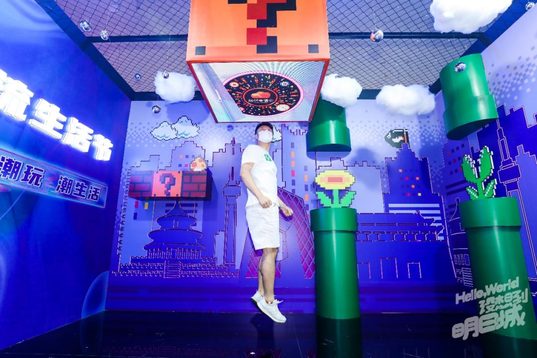 要抓住年轻人,首先得了解他们的行为方式,这是“没想到明日城”的底层逻辑,也是所有参与品牌设置互动的原点。以融创北京集团在现场打造的快闪店“融创潮流馆”为例,为了吸引更多的年轻人,融创北京集团打破传统做法,在现场玩起了真人“超级马里奥”游戏。整个潮流馆被打造成了一个“超级马里奥”游戏大厅,这个熟悉的场景曾经伴随年轻一代而长大,进入其中,熟悉的沉浸感就会扑面而来:绿色的烟囱、红砖墙上的蘑菇、头顶的云朵,还有那个要顶一顶才能获取答案的问号方块。所有参与的用户可以瞬间变身 “超级马里奥”本奥,前来打卡的网红博主、爱玩的年轻人,年轻的情侣,以及那些可爱的孩子。