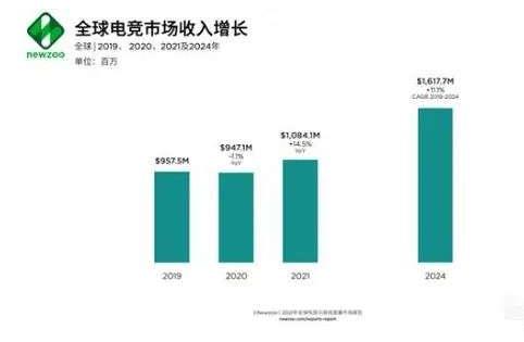 但第三方游戏市场数据服务提供商Newzoo在不久前发布的《2021年全球电竞与游戏直播市场报告》中显示,全球电竞市场收入将由2020年的9.471亿美元增至2021年的10.84亿美元,年同比增长率14.5%。9.471亿美元差不多是61亿元人民币,这与国内统计机构的千亿市场规模显然有着数量级的差异,并且前者统计的是全球,而后者还仅仅只是国内市场。