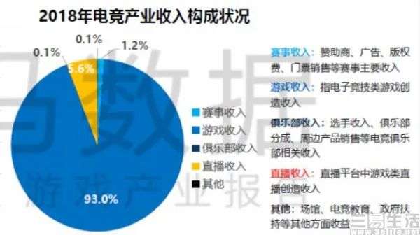 其实,在国内某些研究机构发布的报告与Newzoo数据中采用的不同标准,才是这个问题的关键。Newzoo方面将电竞行业的营收构成,分为赞助收入、媒体版权、周边商品与门票、游戏发行商补贴、虚拟商品和直播收入,基本与传统体育项目的营收构成类似。