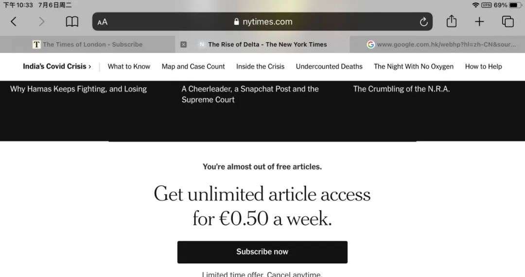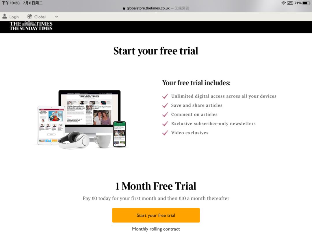 图注:《泰晤士报》为用户提供免费试用一月的服务(来源:The Times)