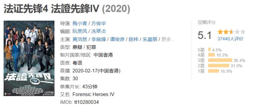 结果大家都知道。梅小青、刘家豪几部进军内地市场的新作《溏心风暴3》《宫心计》《法证先锋4》反响平平。2020年内地豆瓣评分5.1的《法证先锋4》后,梅小青宣布退休,后续恐怕不会再有新作产出。
