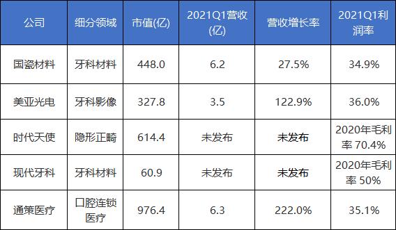▲ 目前上市的口腔企业