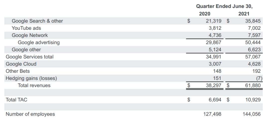 谷歌二季度收入构成情况,图片截自于谷歌二季度财报