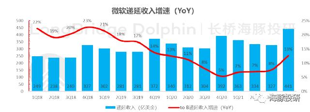 但是,本季度公司的递延收入达到了441亿美金,已是公司一个季度的实际收入体量,同比加速增长至13%,已再次站上了两位数增长。