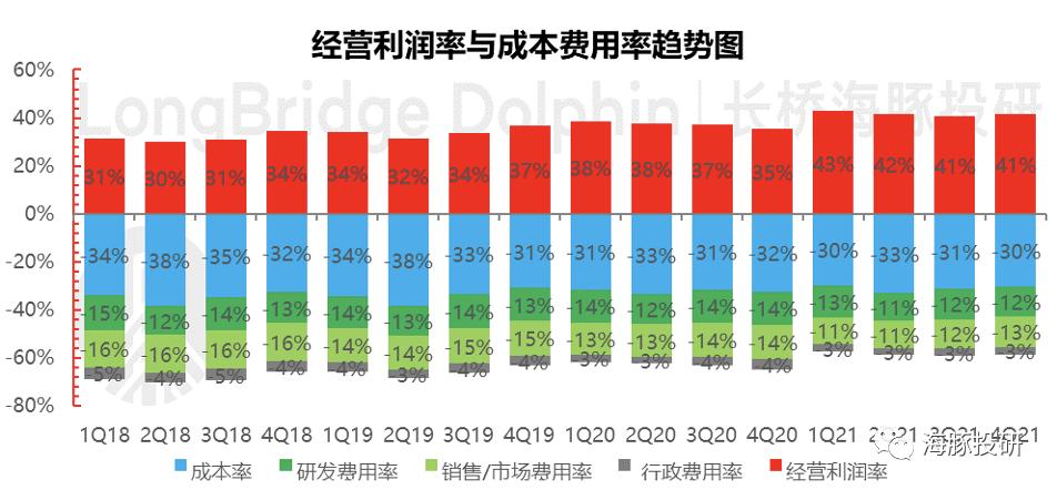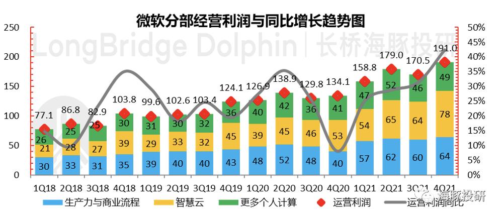 3)在一系列硬核的业绩交付之下,本季度经营利润达到了191亿美元,超出市场预期均值173亿,同比增长45%,远远超出了收入21%的增长速度。 经营利润率稳站 40%以上 ,一个妥妥的“IT代码”印钞机!