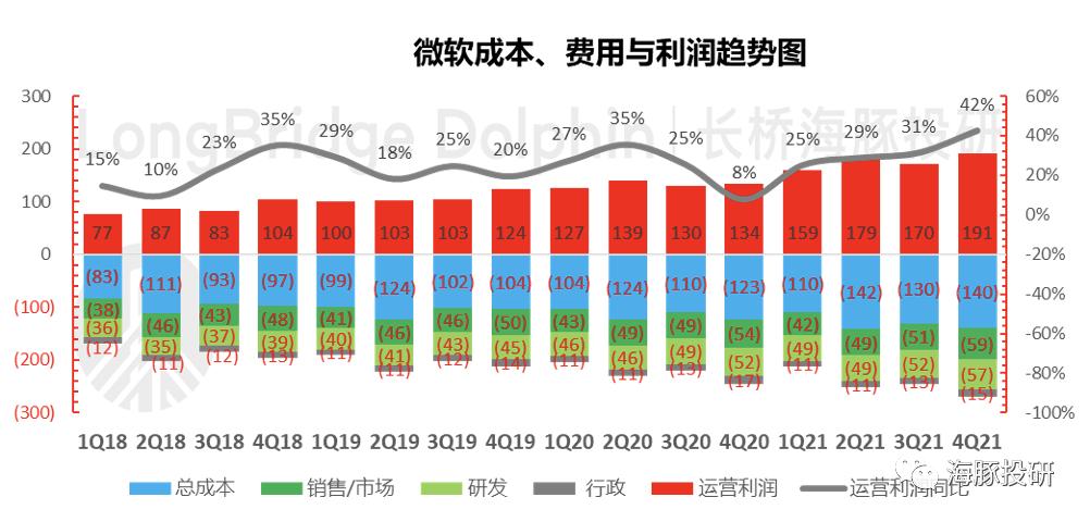(2)海豚君结合成本与费用指引测算,微软经营利润至少180亿美金以上,同样超市场预期177亿美金。
