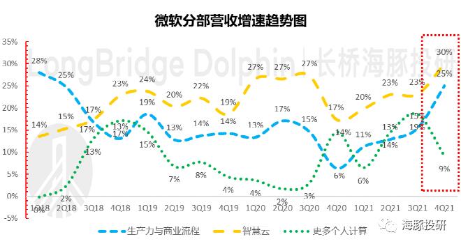 超预期的质量也非常高,主要是微软的核心估值故事SaaS和PaaS云业务增长强劲。