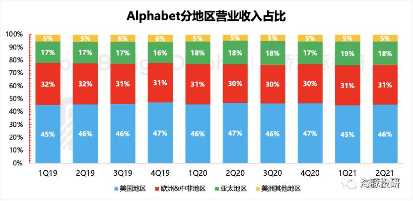 分地区收入结构上,本季度也基本保持稳定,欧美为谷歌主要收入来源地区。