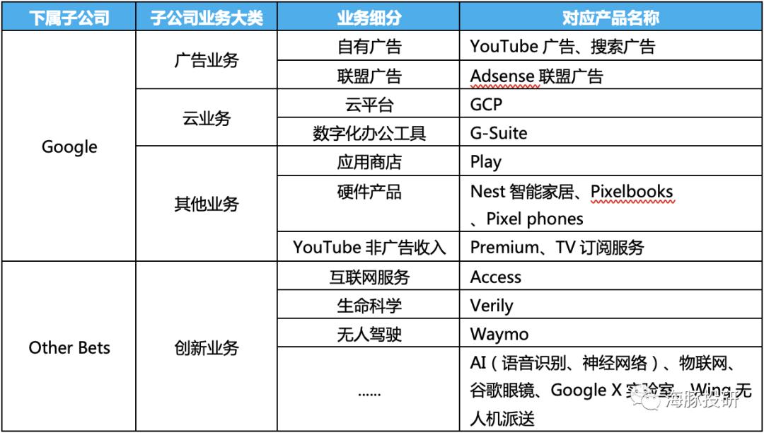由于从2020年开始,公司财报披露的收入结构较之前有所调整,因此在进行具体的财报解读之前,可先回顾一下Alphabet的最新业务架构。