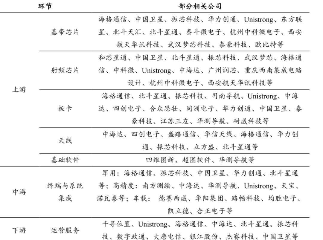 北斗产业链上的部分公司 来源:浙商证券研究所