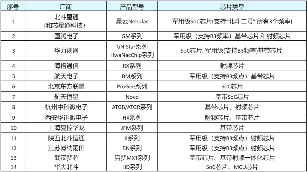 国内北斗芯片主要厂商及其产品 来源:公开资料整理